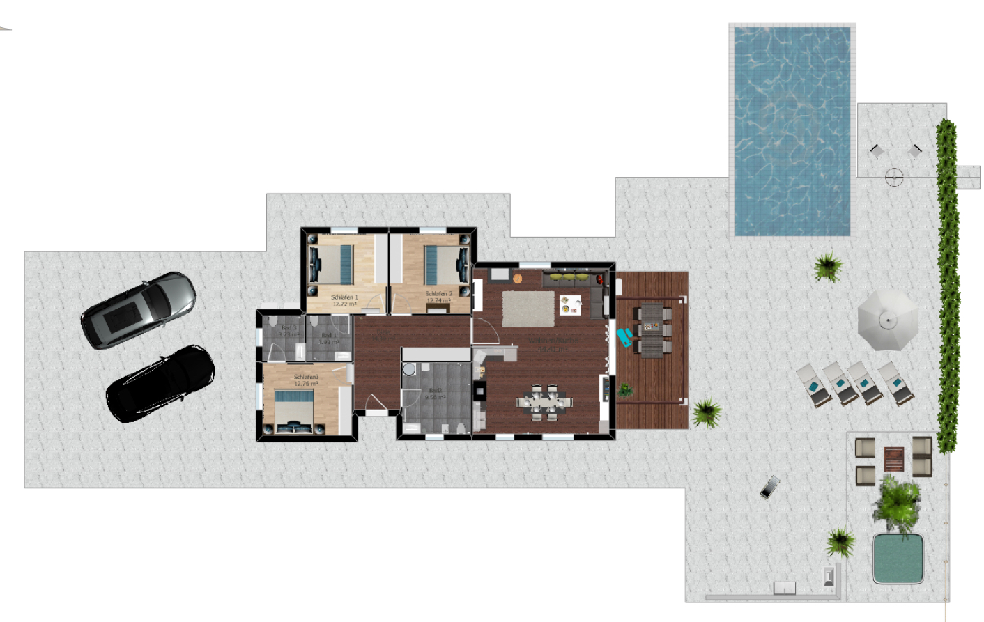 für bis zu 6 Personen, 3 Schlafzimmer mit jeweils eigenem Bad, barrierefrei für Rollstuhlfahrer geeignet